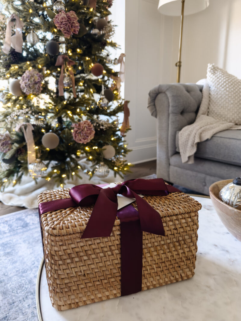 If you are looking for a hostess gift, I like gifting this basket filled with a homemade treat for the next morning. This one was filled with pumpkin muffins. This basket is great for storage in a cabinet or out on a shelf. Super versatile.