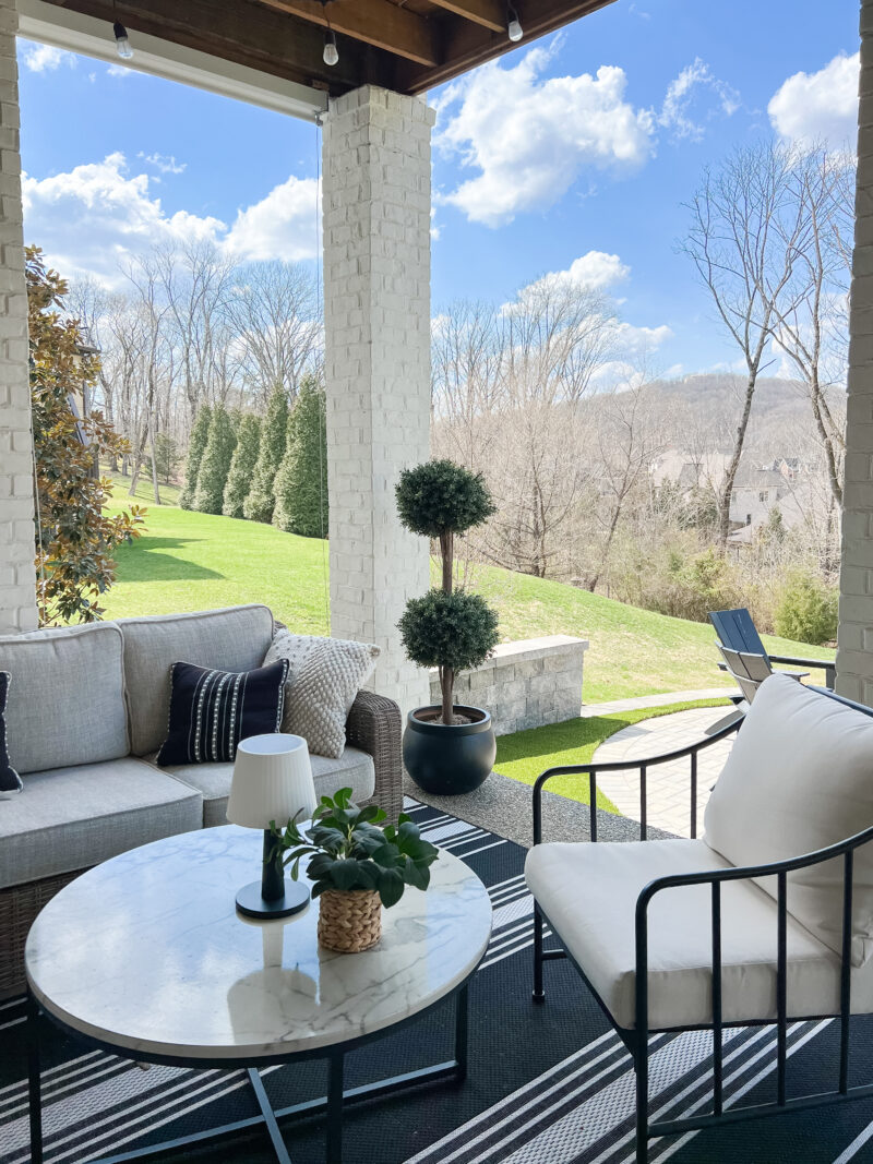 We are in the 70s this week and so grateful. Spring is my favorite time of year. The pollen is still doing its thing so I’ll need to use this little machine again . . . but it’s wonderful for cleaning the outdoor furniture. We have had these outdoor lamps for years and love them. They give off the best warm ambiance at night. They transform the space into such a cozy spot.