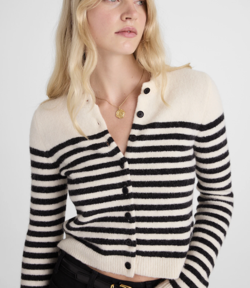 This cardigan is so cute!! Love the stripes. It comes in three different colors.