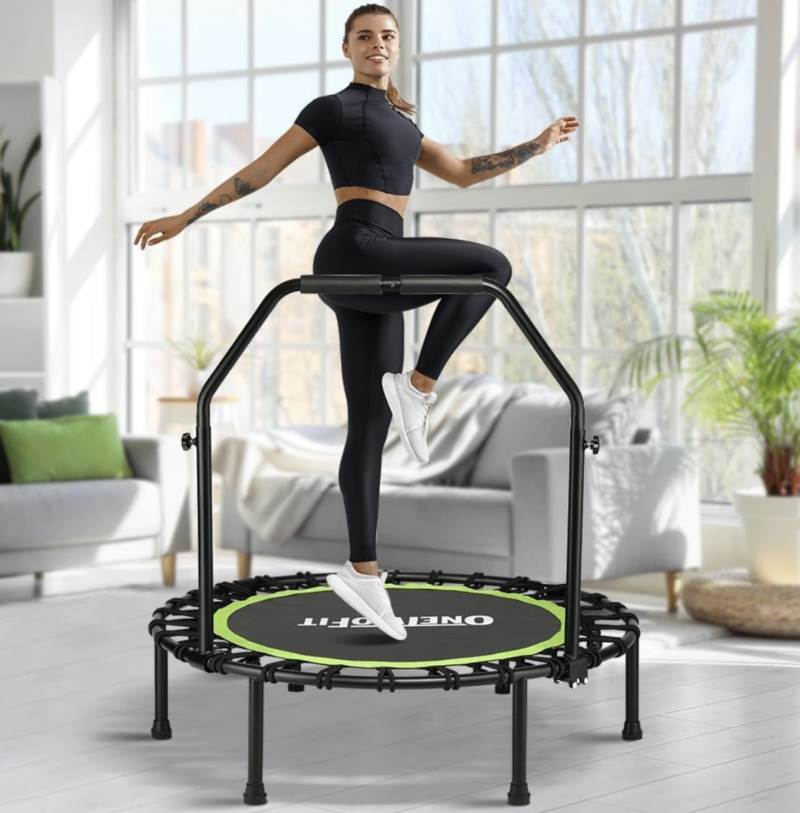 Such a phenomenal deal. Have you seen the research on rebounding. So many benefits from lymph drainage to increasing bone density. 10-15 minutes of jumping is the equivalent of 10,000 steps (as far as benefits). Plus it’s a major mood booster. Great for everyone in the family. I wish we had this one because it colds away. Genius. And I like the bar – great for stability.