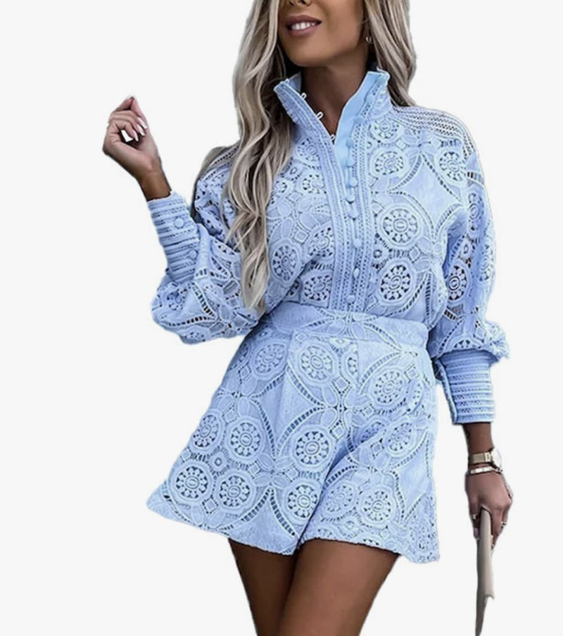 The scalloped top also has a matching skirt – really cute set.