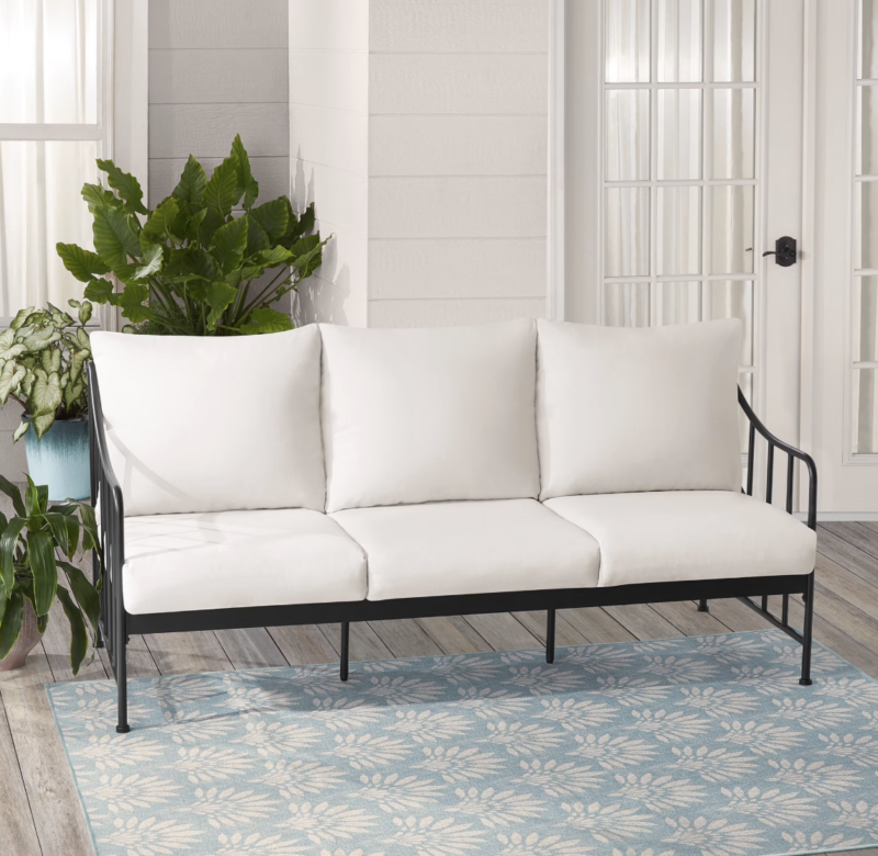 *Our black and white chairs now come in a sofa version (under $300). A 10/10 – the fabric cleans so well and they are remarkably comfortable. Highly recommend.