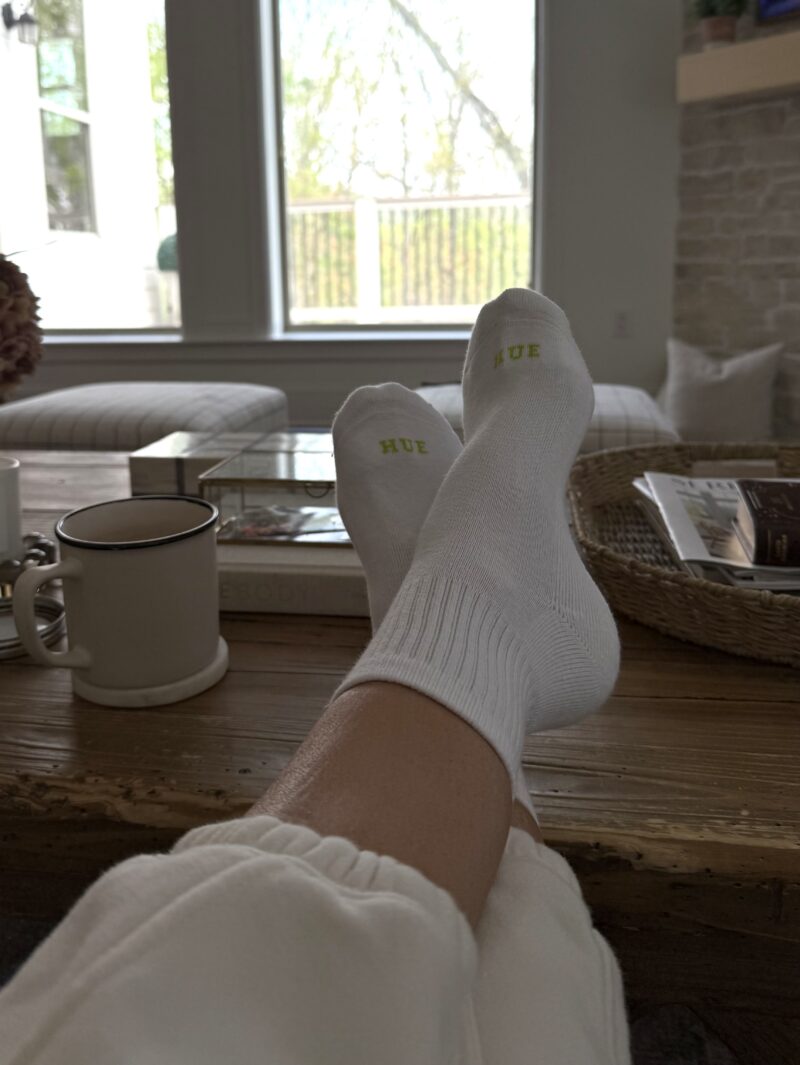I normally wear these with my workout wear, but also around the house. Great socks!