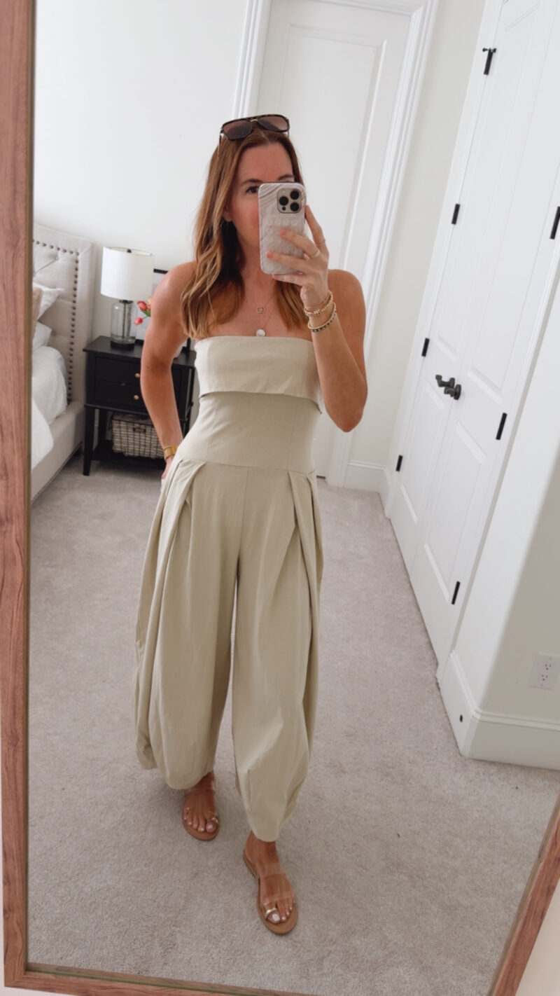 I’m head over heels for this jumpsuit. When I took it out of the package I wasn’t sold. And it needed to be steamed. . . but once I put it on, I would love it in the blue, too. It’s a good one girls.