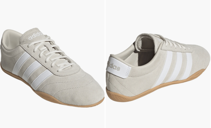 I love these. This paired down slim sneaker is so in right now. I love these for travel because you can wear them with a trouser or dressier pant and they still work. So versatile versus something that is more bulky.